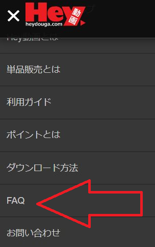 HEY動画は退会フォームへ行く手順が2つあります。1つはHEY動画にある「メニューバー」をクリックして、HEY動画のFAQをクリックする方法です。