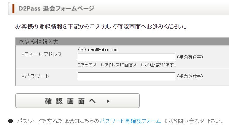 登録したメールアドレスとパスワードを入力して、「確認画面へ」をクリックします。